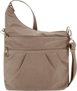 I carried a red version of this bag, slightly different style, for a Europe trip in 2015. Loved it so much, I made this purse my daily bag for months. I carried this purse (Amazon, $45) as my main day-bag for several years after taking it to France in 2015. It’s very comfortable as a cross-body bag with a slim profile. The handle is knife-resistant (no one will cut your bag off your shoulder) and the multiple pockets and zippers can be locked down if you’re especially worried. There are plenty of internal pockets for all your foreign coins, random dollars, and travel documents.